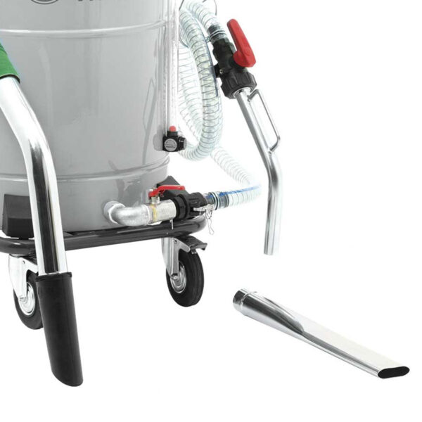 El aspirador VHO200 CB para líquidos es ideal cuando la necesidad principal es vaciar los depósitos, y debe recuperar el 60% de los líquidos y no más del 40% de las virutas de metal. Aspirar líquidos representa un ahorro en caso de que la emulsión sea filtrada y reutilizada. Recoja 75 litros de líquido y descárguelos rápidamente a través del kit de eyección simplemente activando la válvula de desvío que cambia el flujo de succión a uno de soplado, facilitando el almacenamiento de líquidos en los bidones o simplemente su eliminación en los lugares apropiados.El VHO200 CB está equipado con una cesta de virutas que puede separar materiales sólidos de líquidos. Esa solución, junto con el contenedor extraíble, permite una eliminación rápida y fácil del material recolectado. Esta configuración se completa con un conjunto completo de accesorios a prueba de aceite capaces de tratar cualquier tipo de superficie donde se deben aspirar aceites.